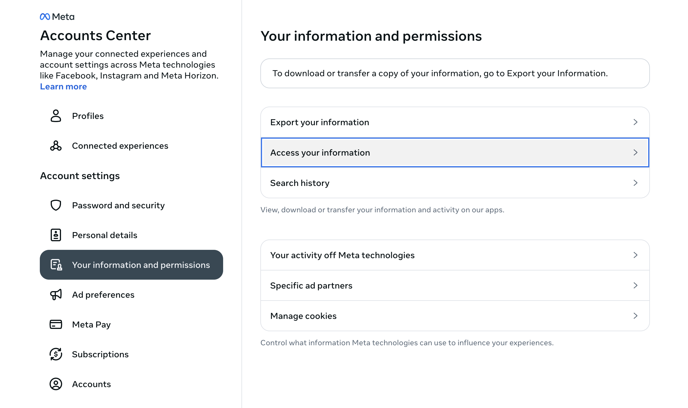 Go to Facebook > Settings & Privacy > Settings > Accounts Center > Your Information & Permissions > Get your information. Choose Messages, then export them (you can set a date range or select “all time” to save everything).